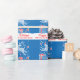 Get Christmas wrapped up with this unique cute prancing reindeer character with red nose in the white, blue and red. Christmas wrapping gift paper. Reads happy holiday, with love from. Customise with your family name or own greeting and message. Uniquely illustrated and designed by Sarah Trett.