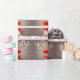 Get Christmas wrapped up with this unique cute reindeer character with red nose and large antlers in the white snow striped patterned Christmas wrapping paper. Customise with your own greeting and company or family name. Currently reads Merry Christmas from the Smiths. Uniquely illustrated and designed by Sarah Trett.