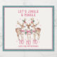 Christmas Reindeer Jingle & Mingle Festive Party Personalised Name Sparkling Wine Labels Stickers features festive reindeer with pink bows and floral accents with the text "Let's Jingle & Mingle" in modern pink calligraphy script typography with your personalised name. Perfect personalised gift for Christmas and the holidays for family and friends. Designed by ©2024 Evco Holidays www.zazzle.com/store/evcoholidays