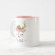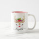 A cute reindeer face with flowers decorates this mug. Makes a cute Christmas gift for a girl. Personalise this unique mug for a girl you know. Designed for you by Blackberry Boulevard.