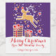 Personalise these festive Christmas wine bottle labels with your own name greeting and wine variety. Fun dark blue, red yellow and white design of a reindeer with a red nose prancing over boxed Christmas gifts. Ideal to gift Christmas wine to family, friends or clients. © Original art graphics and design by Sarah Trett. www.sarahtrett.com for www.mylittleeden.com