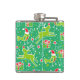 Fun cute reindeer and singing bird in green white and red. Christmas hip flask. For those who love a drop of the strong stuff at Christmas.