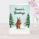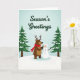 This lovely card captures the warm, cozy feeling of the winter holidays with a sweet, stylized design. In the center, there's a friendly brown character that looks like a bear with antlers, wearing a bright red scarf, next to a classic snowman with a carrot nose and stick arms. They seem to be enjoying each other's company in a snowy setting, surrounded by two matching evergreen trees dusted with snow. The snowy ground rises gently in front of them as they stand together. Above them, the words "Season's Greetings" are written in fancy dark green letters against a soft blue sky, giving the feeling of a clear winter day. The overall look is cheerful and peaceful, with a hint of nostalgia, filled with the traditional holiday colors of red, green, and white. This charming scene is perfect for spreading holiday cheer to your loved ones. 🎅🏼🎄🎁