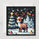 Adorable pixel art reindeer, Christmas Tree on a snow filled night.