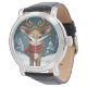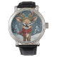 christmas reinder engraved modern leather elegant watch