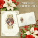 Featuring a beautiful custom designed religious Christmas image of the Holy Family at the Nativity of Jesus overlaid in a gold decorative frame with Christmas Scripture Verse.