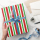 Christmas Retro Red Green White Stripes Gold Text Wrapping Paper