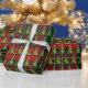 Christmas Ribbon Trees On Tartan Plaid Wrapping Paper