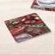 Christmas Ribbons Red Green and Gold Holiday Square Paper Coaster