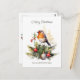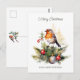 This design features a watercolor illustration of red - breasted robin perched on a branch of pine.