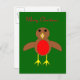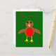 This postcard features a cute Christmas Robin character with a bright red breast, brown body and beady black eyes. It has its yellow beak wide open as it sings a Christmas carol. Its wings are outstretched as it joyously waits for Christmas. This postcard is great for sending to friends and family at home and abroad this year to wish them a happy Christmas.