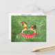An antique Christmas rocking horse with a rustic green background. Personalise the message and font on this postcard.