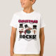 The t-shirt feels and looks great quality, a good thick cotton. It will be a little big for my son, but that means he will be able to wear it and not out grow it too soon. The print was as described on the order when personalised. True size, shape and colour T-shirt- thanks.