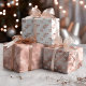 This set of 3 wrapping paper sheets features a Christmas pattern of holly leaves in 3 coordinating rose gold colour schemes: metallic rose gold foil, white on rose gold, and rose gold on white.
