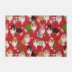 CuteCute Rough Collie dogs dressed in festive holiday outfits, Santa hats and argyle sweaters with scattered Christmas ornaments.