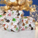 Cute Rough Collie dogs dressed in festive holiday outfits, Santa hats and argyle sweaters with scattered Christmas ornaments.