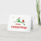 This card depicts a single rower in christmas green and wearing a christmas hat. A gift is carried in the boat, and there are three golden stars in the background. The greeting in red on the front is "MERRY CHRISTMAS".