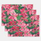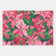 Christmas Ruby Pink Poinsettia N Leaves Pattern Wrapping Paper Sheet