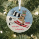 Christmas Rudolph Skiing Glass Ornament