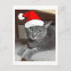 beautiful Russian Blue grey cat wearing a Santa Hat