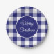 Christmas Rustic Blue And White Checks Pattern Paper Plate