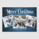 Christmas Rustic Blue Wood 3 PHOTO Greeting Magnetic Card.
