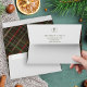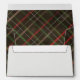 Modern stylish Christmas holidays greeting card envelope with a red burgundy and hunter green tartan plaid pattern and return address with your custom green monogram / name initial.
