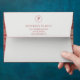 Modern stylish Christmas holidays greeting card envelope with a red burgundy buffalo check plaid pattern and return address with your custom monogram / name initial.
