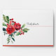 Christmas rustic watercolor seasonal botanical bouquet red monogrammed wedding envelope with winter flowers, pine cones, and fir boughs border liner. ++++++++++++++ Matching invitation and stationery available in the collection.