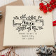 Christmas Rustic Foliage Ribbon Family Address rubber stamp. Rustic address stamp for your Christmas mail with the family name on the ribbon in trendy script. Rustic ribbon with foliage.
