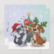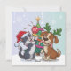 A heartwarming Christmas Day celebration where pets, especially a playful cat and a joyful dog, are the centre of attention. The scene features a cosy living room adorned with twinkling lights, a beautifully decorated Christmas tree, and wrapped presents. The dog is excitedly wagging its tail, wearing a festive holiday sweater, while the cat, perched near the fireplace, playfully bats at an ornament. Both pets are surrounded by stockings, festive treats, and a sense of joy and love, capturing the magic of Christmas through the eyes of our beloved furry friends.