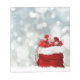 Design features a photograph of a sack full of wrapped presents against a blue background.