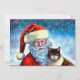Christmas Santa and Cat Flat Note Card