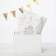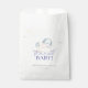 The "Santa Baby" shower favour bag has a sweet, festive design, featuring a baby in a blue Santa hat with soft clouds and stars. It uses playful red script and pastel tones, creating a cosy holiday feel, perfect for a winter baby shower.