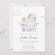 The "Santa Baby" shower invitation card has a sweet, festive design, featuring a baby in a blue Santa hat with soft clouds and stars. It uses playful red script and pastel tones, creating a cosy holiday feel, perfect for a winter baby shower.