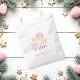 The "Santa Baby" shower favour bag has a sweet, festive design, featuring a baby in a pink Santa hat with soft clouds and stars. It uses playful red script and pastel tones, creating a cosy holiday feel, perfect for a winter baby shower.
