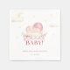 The "Santa Baby" shower party napkin has a sweet, festive design, featuring a baby in a pink Santa hat with soft clouds and stars. It uses playful red script and pastel tones, creating a cosy holiday feel, perfect for a winter baby shower.