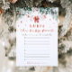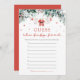 The Red Santa Baby Christmas Baby Clothes Guess The Baby Food Game brings festive fun to your holiday-themed baby shower! Featuring a cute design with red Santa baby clothes, delicate red snowflakes, and touches of winter greenery eucalyptus, this game challenges guests to guess different baby food flavours based on look, smell, or taste. It’s a playful activity that captures the cosy holiday spirit and adds a joyful, interactive element to your celebration as guests compete to identify each flavour correctly. Perfect for creating fun memories and laughter while celebrating your little one’s arrival!