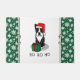 Merry Christmas Santa Claus Boston Terrier - Funny smiling dog with a Santa hat and a Christmas present. HO HO HO! Copyright © Angi Laframboise. Cute holiday dog breed cartoon Christmas gifts for the home.