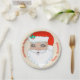 Beautiful Christmas Santa Claus paper plate on beige background. Text Merry Christmas can be personalised.