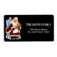 This is Christmas Gold Tree with Black Background return address label design. This design feature is a gold handwritten font with scroll frame accents on a White Snow Glitter background with a rustic textured look. Custom return address text. Personalised address labels for all your mailings.
