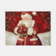 Holiday doormat shown in a vintage festive Christmas Santa print.