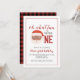 Oh what fun, it is to be One! Christmas Santa first birthday party invitation with watercolor santa, christmas and buffalo plaid back.