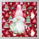 Christmas Santa Gnome and a Red Pattern Background Party Poster. Decorate your home with holiday decor for your wall. This gnome poster is quite festive for your party. Personalise this by changing the big gnome for another image. Edit it for more customisation.