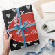 Christmas Gifts with Santa Greeting Ho Ho Ho Red Gift Tag Black and White Pattern Elegant Christmas Gift Wrapping Paper with custom To and From Name, you can change or delete the text
