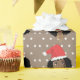Brown skin beauty with natural hair wears a red Santa hat over her afro. She's on a brown background with white stars. Perfect wrapping paper for that special gift and person.