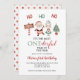 Oh what fun, it is to be One! Christmas Santa first birthday party invitation with watercolor santa, christmas and red polka dot back.