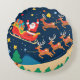 Christmas Santa Reindeer Coming To Town Round Cushion