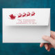 Fun envelope for your Christmas holiday season cards and correspondence featuring a red silhouette of reindeers flying Santa's sleigh through air, and your family name and address in simple modern red typography.