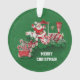 This round hanging acrylic Christmas ornament is dark green with a plump Santa Claus riding a red and white peppermint candy train carrying candy canes and letters to Santa with the text Noel on the engine. Customise the Merry Christmas text on the front and your own message on the back with the templates.